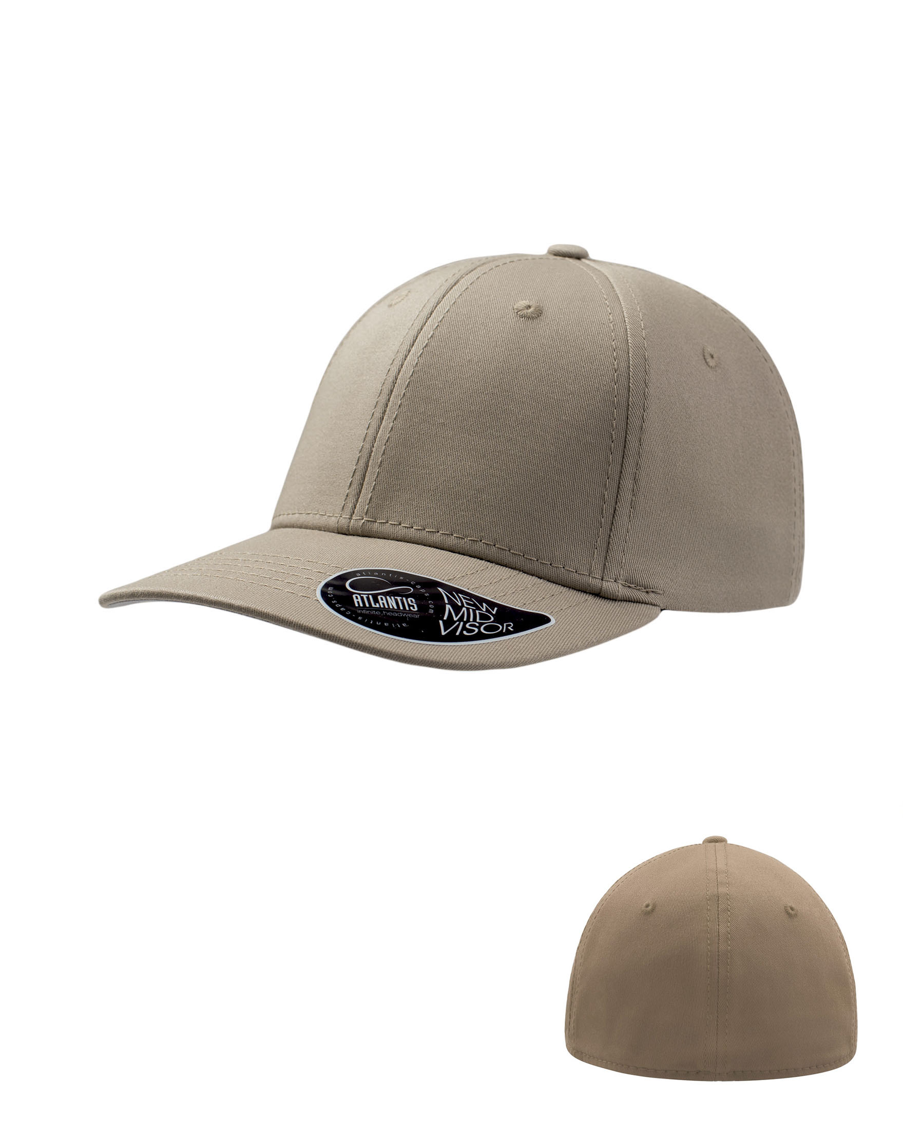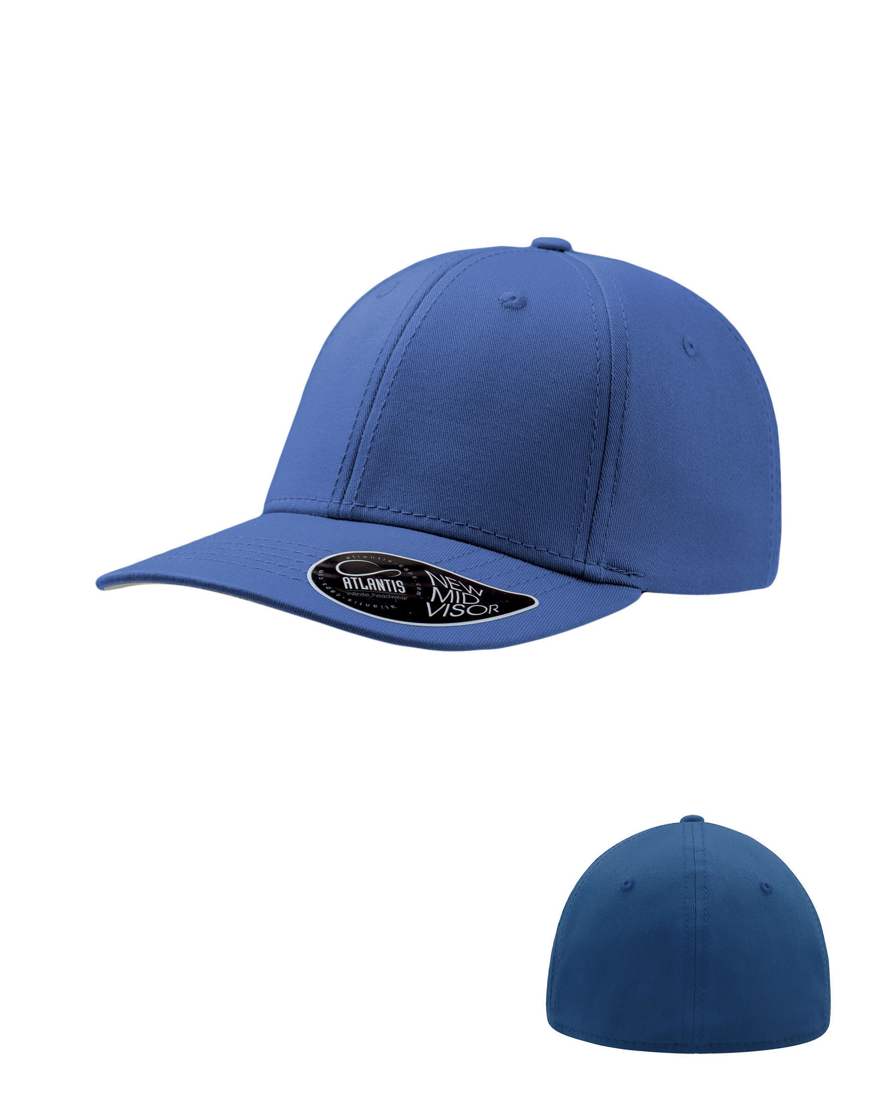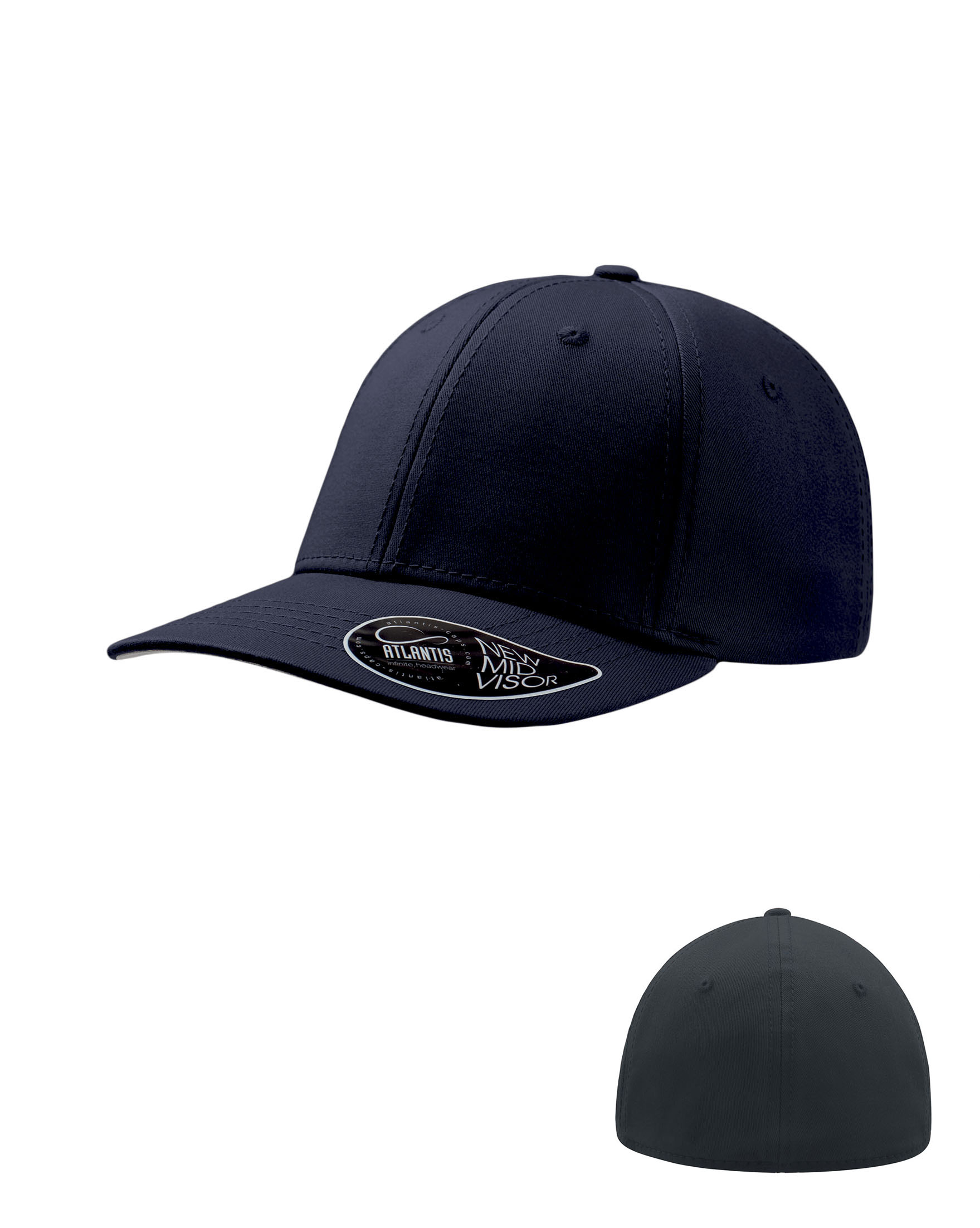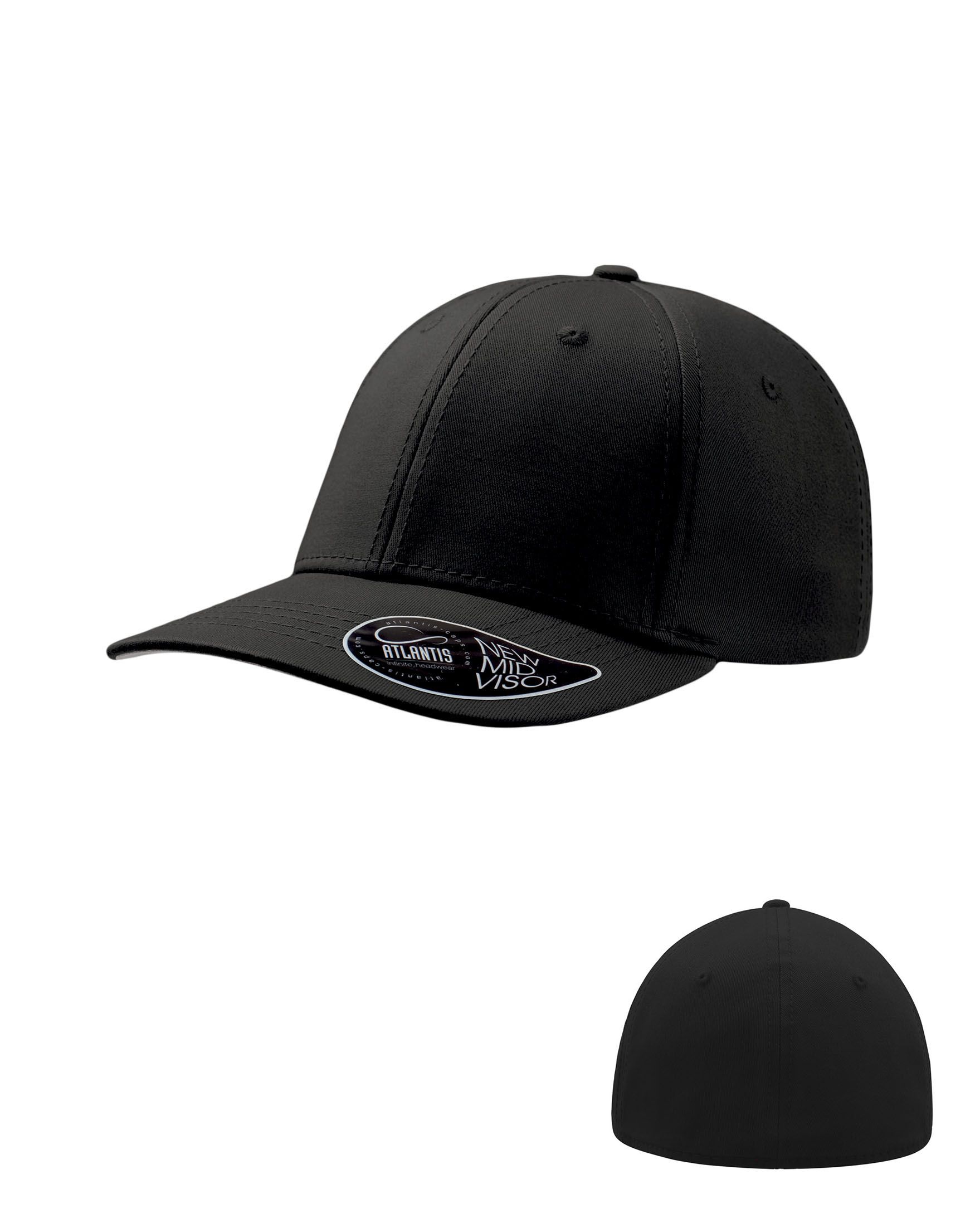 Cap i bomullstretch med 6 paneler. Figursydd og lett buet brem. Medium profil. Helt lukket bakside. Tear away label.